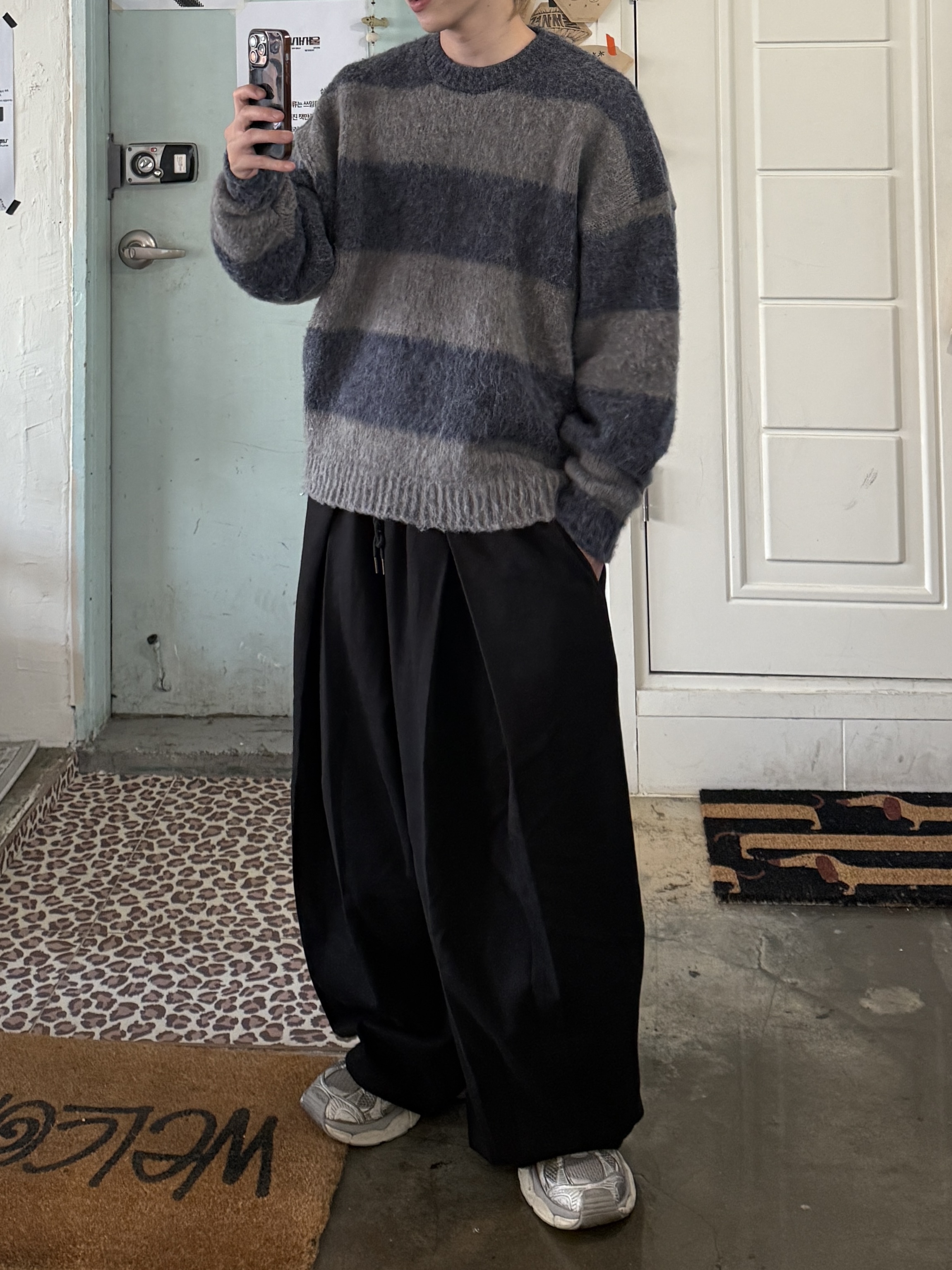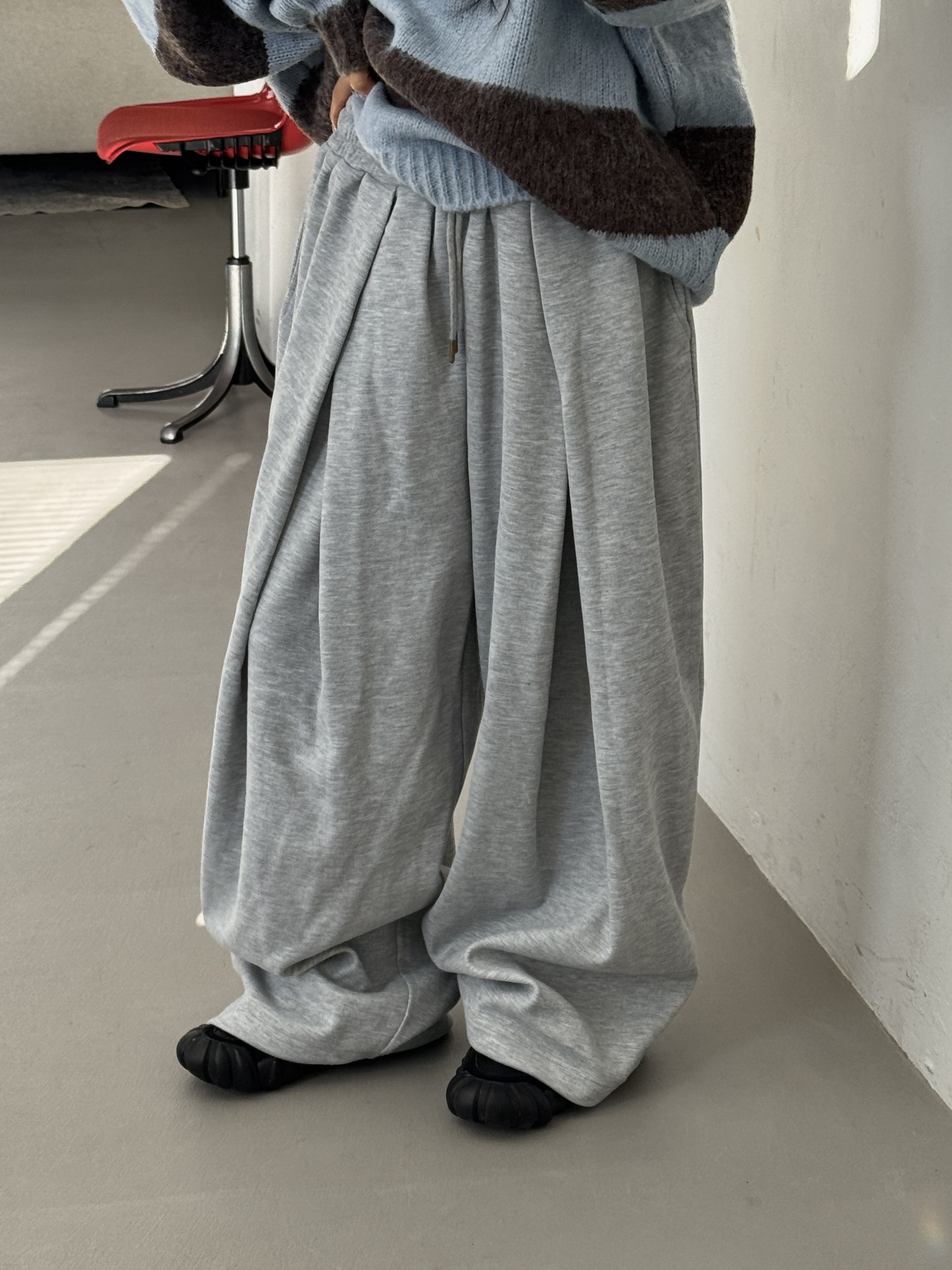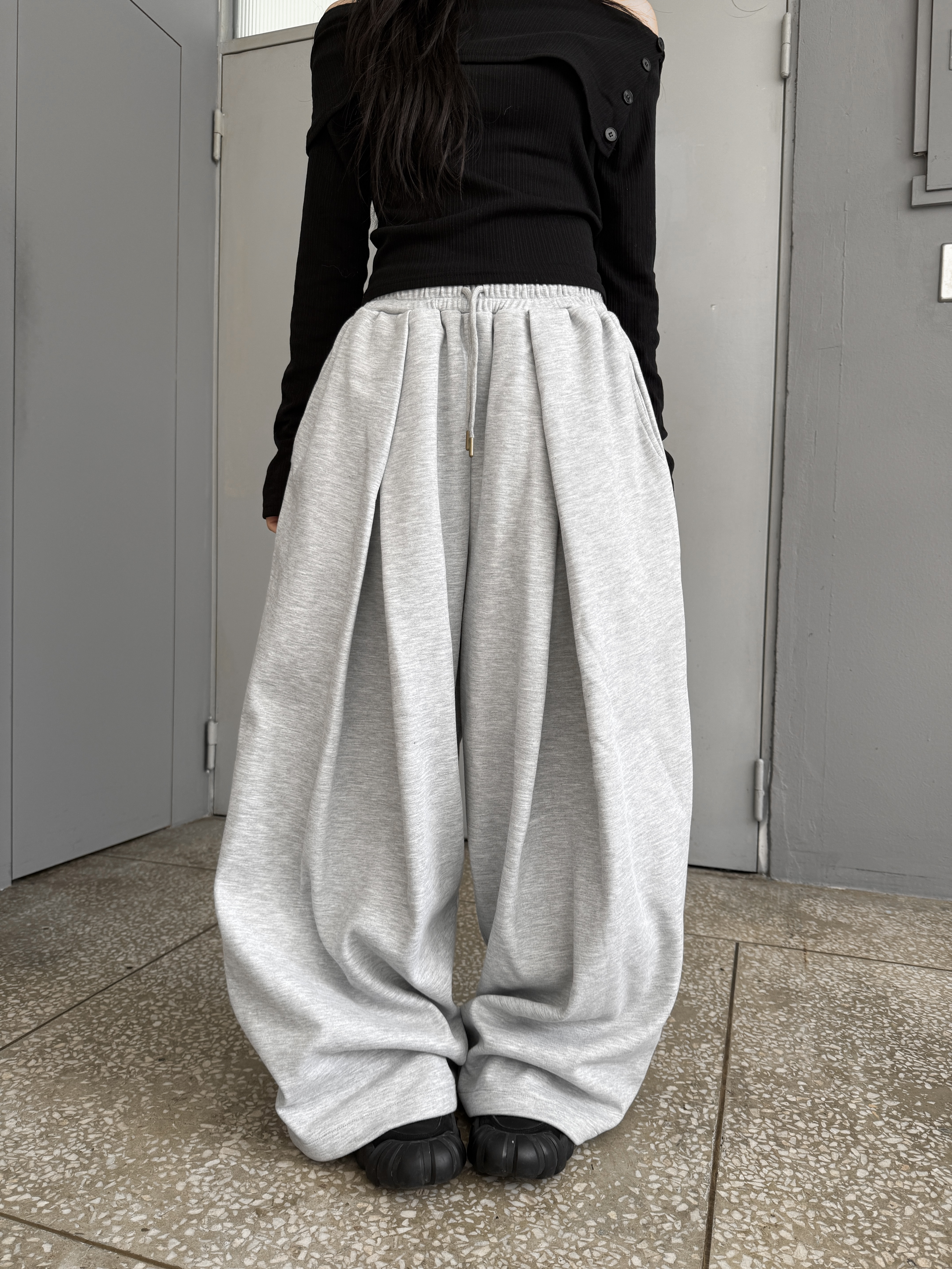 立體摺線設計/腰圍鬆緊細節/經典寬鬆落地版型/褲腳抽繩/一年四季/男女適用