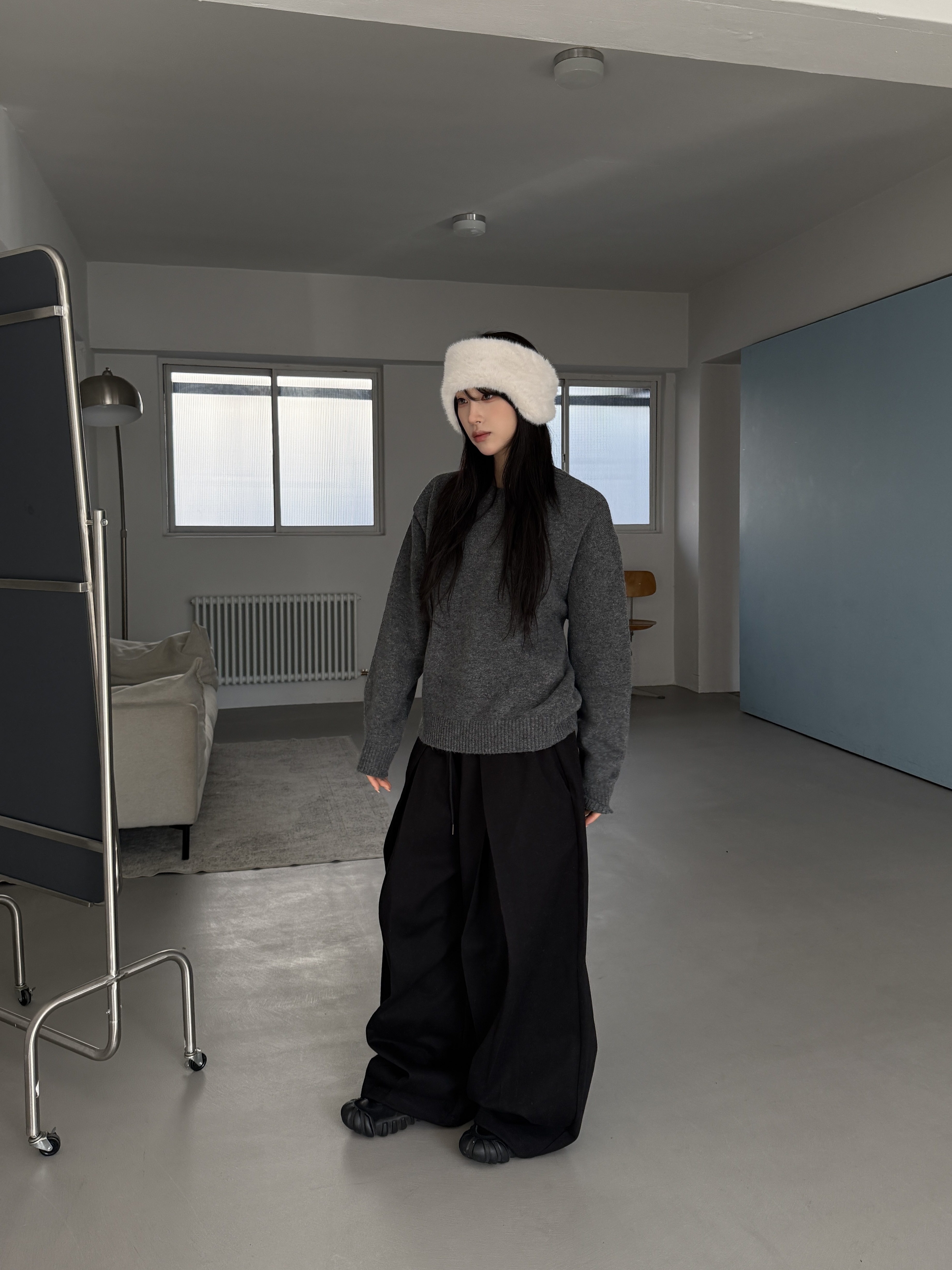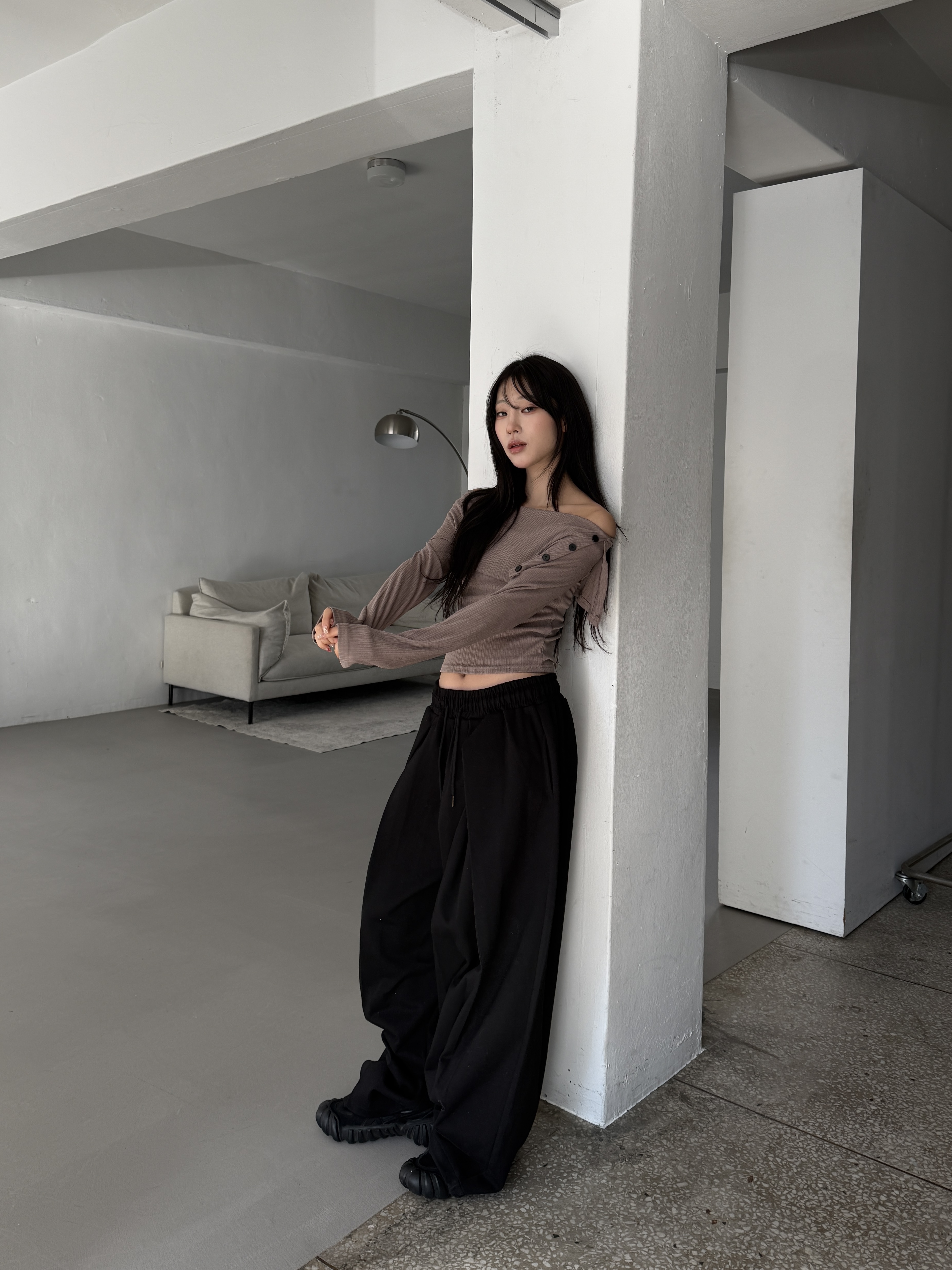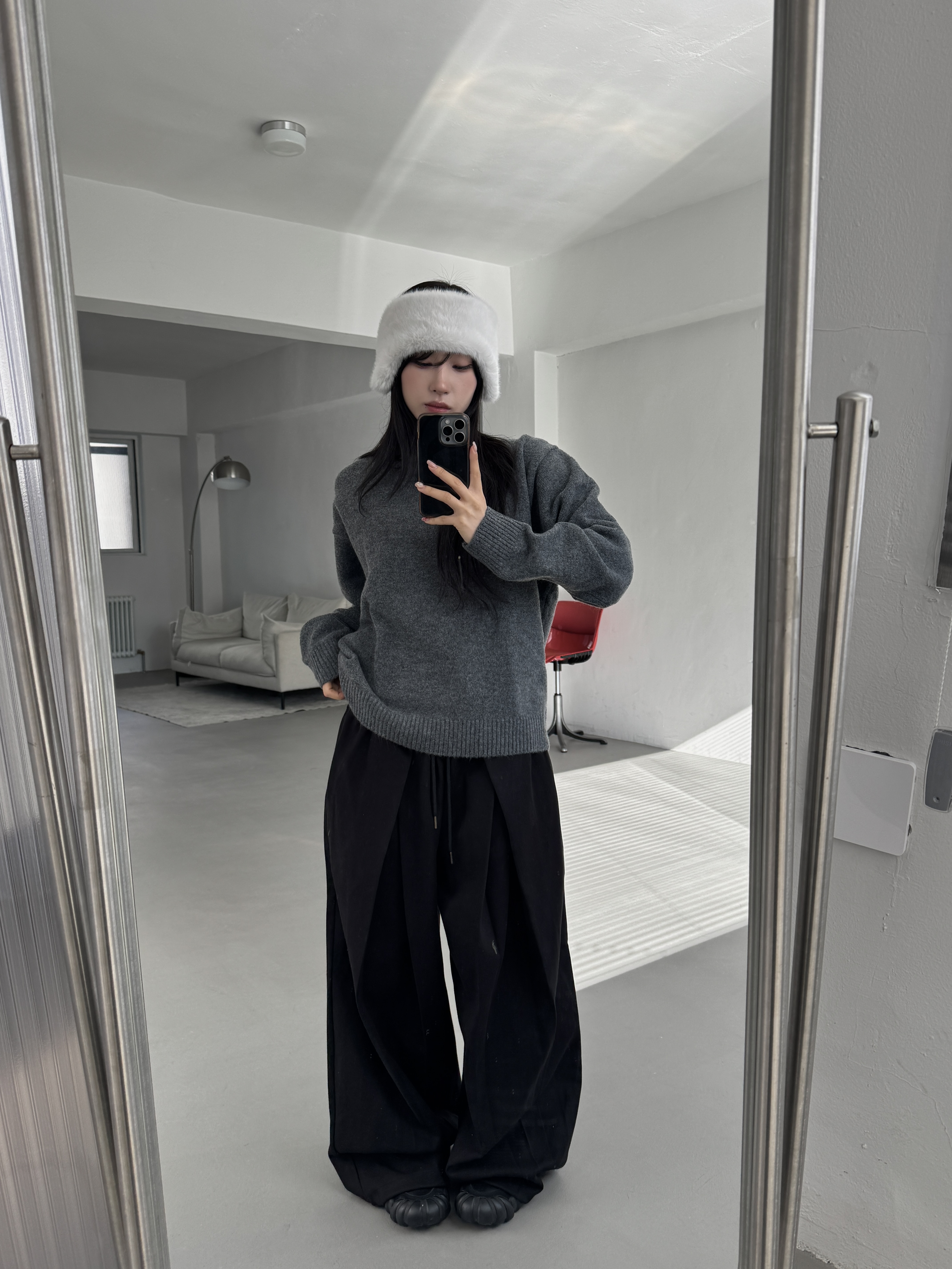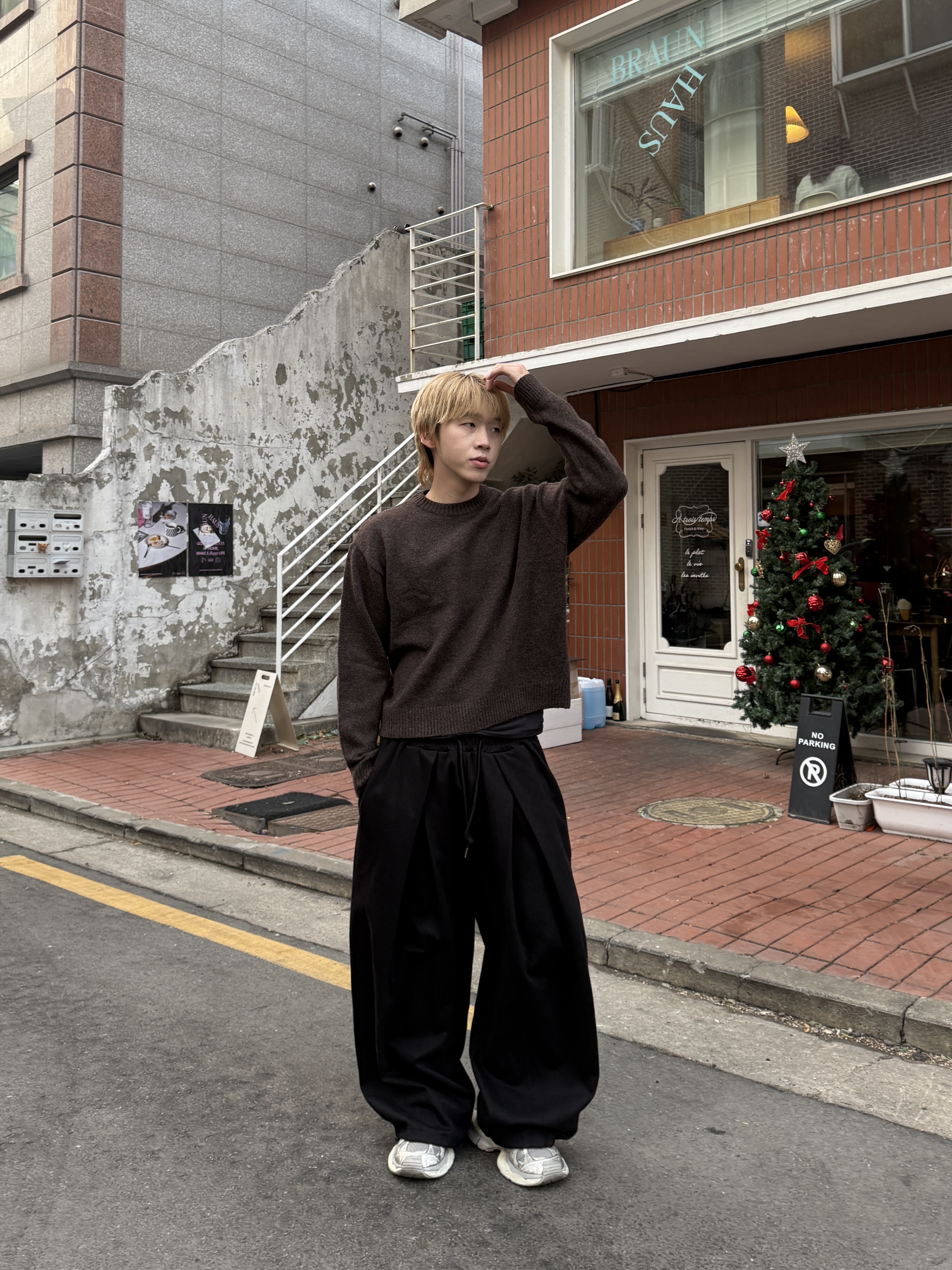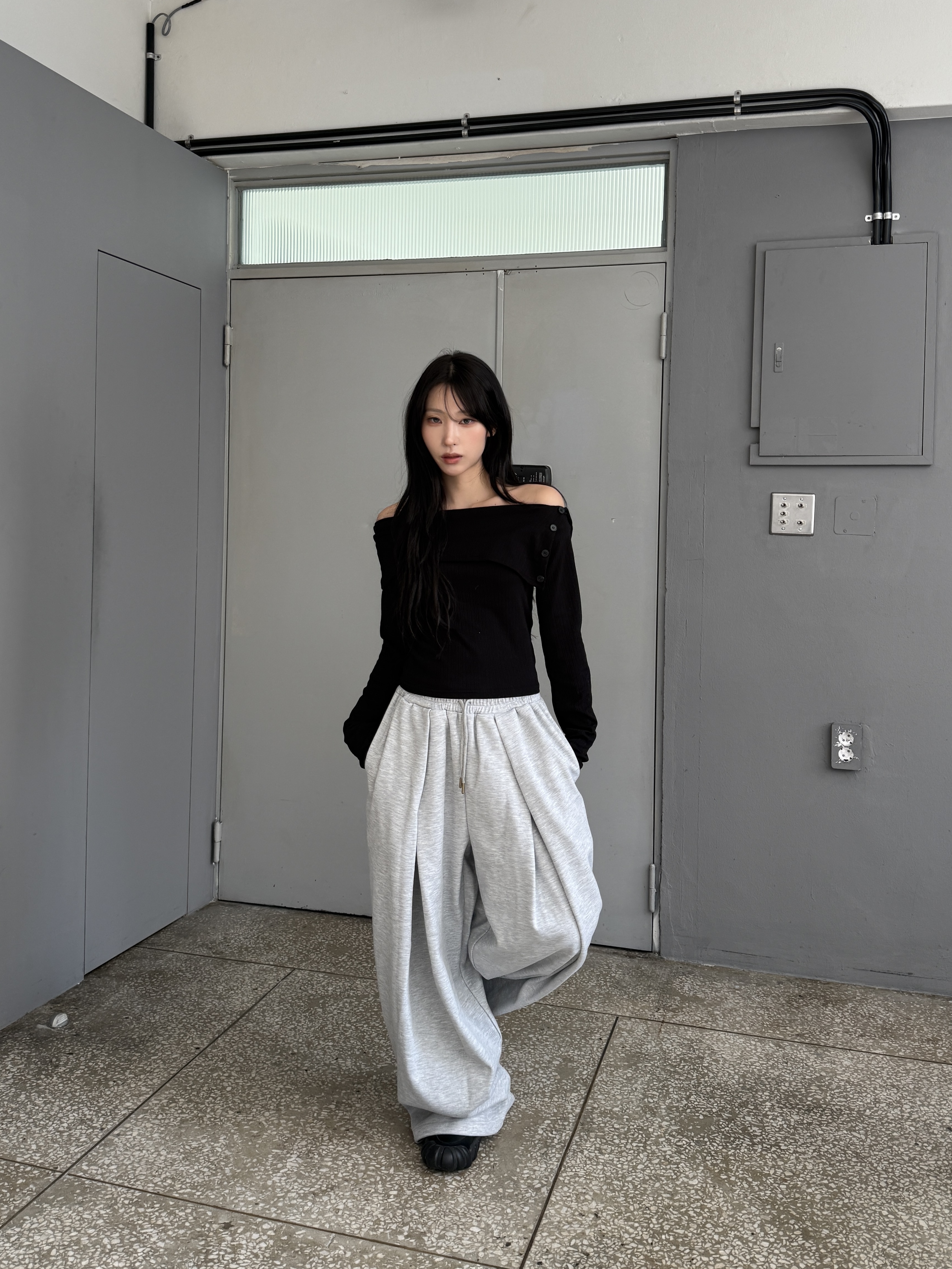 [IDEAL MADE]立體摺線 寬鬆闊腿棉褲(黑)(現貨)