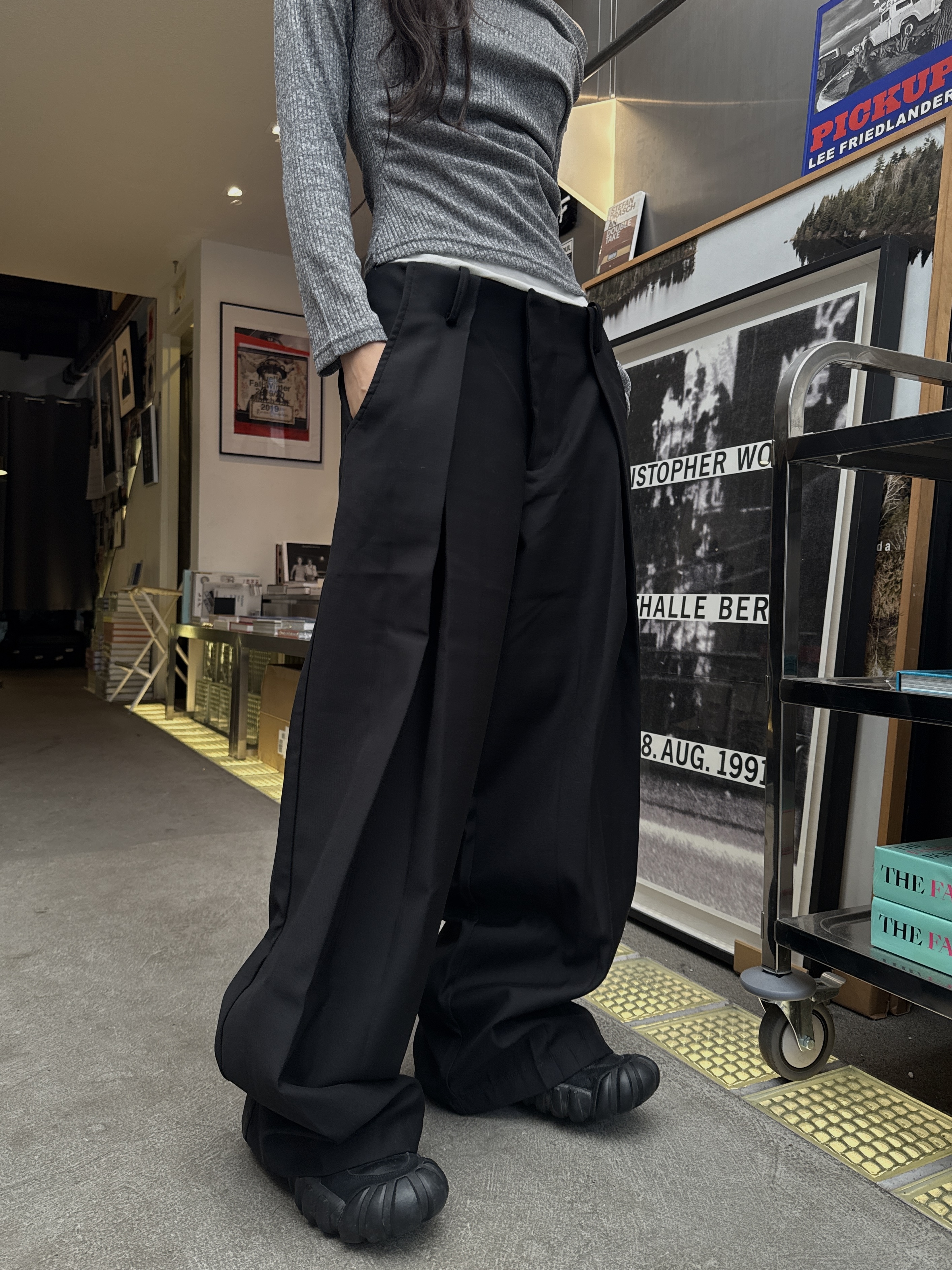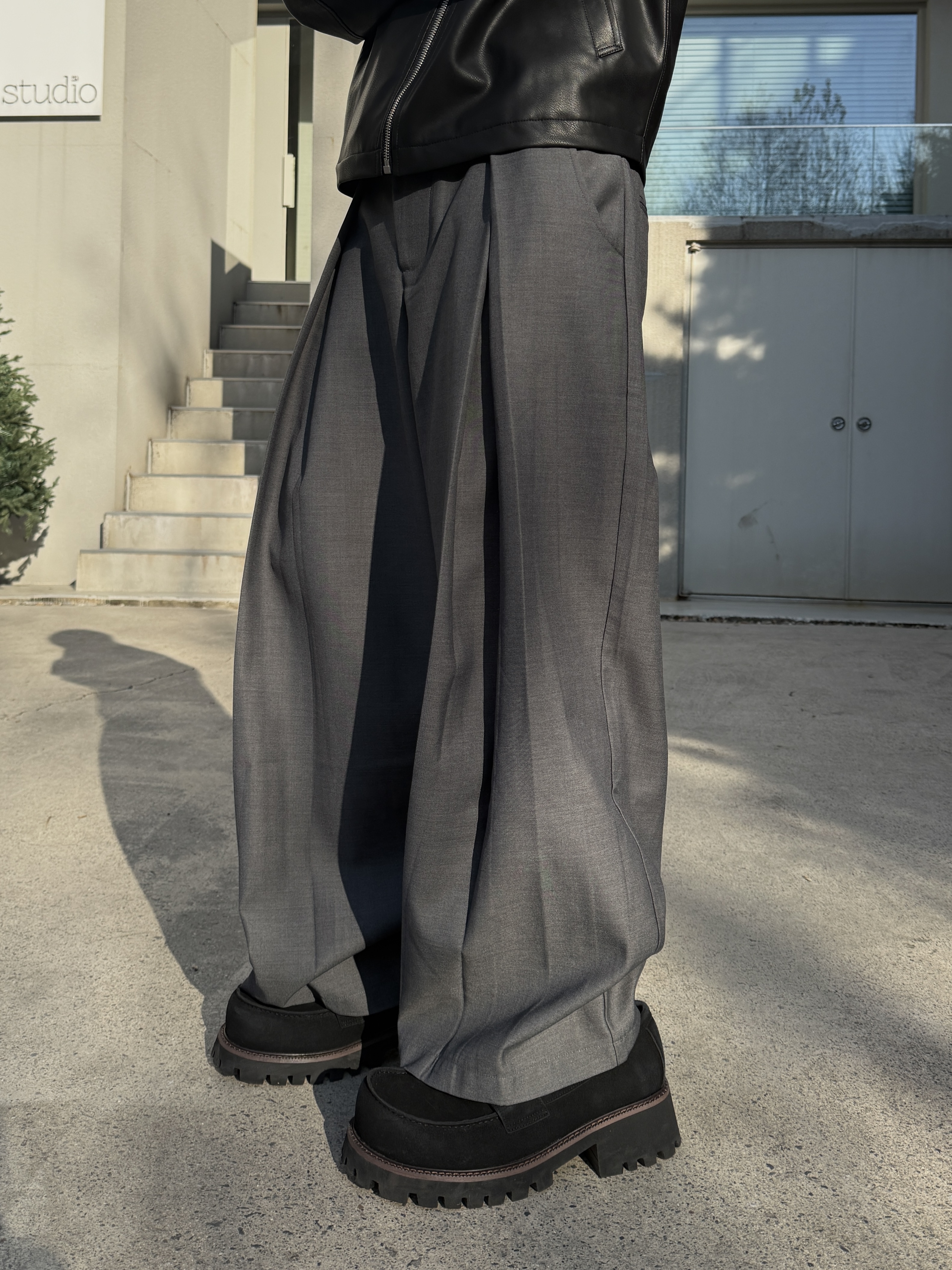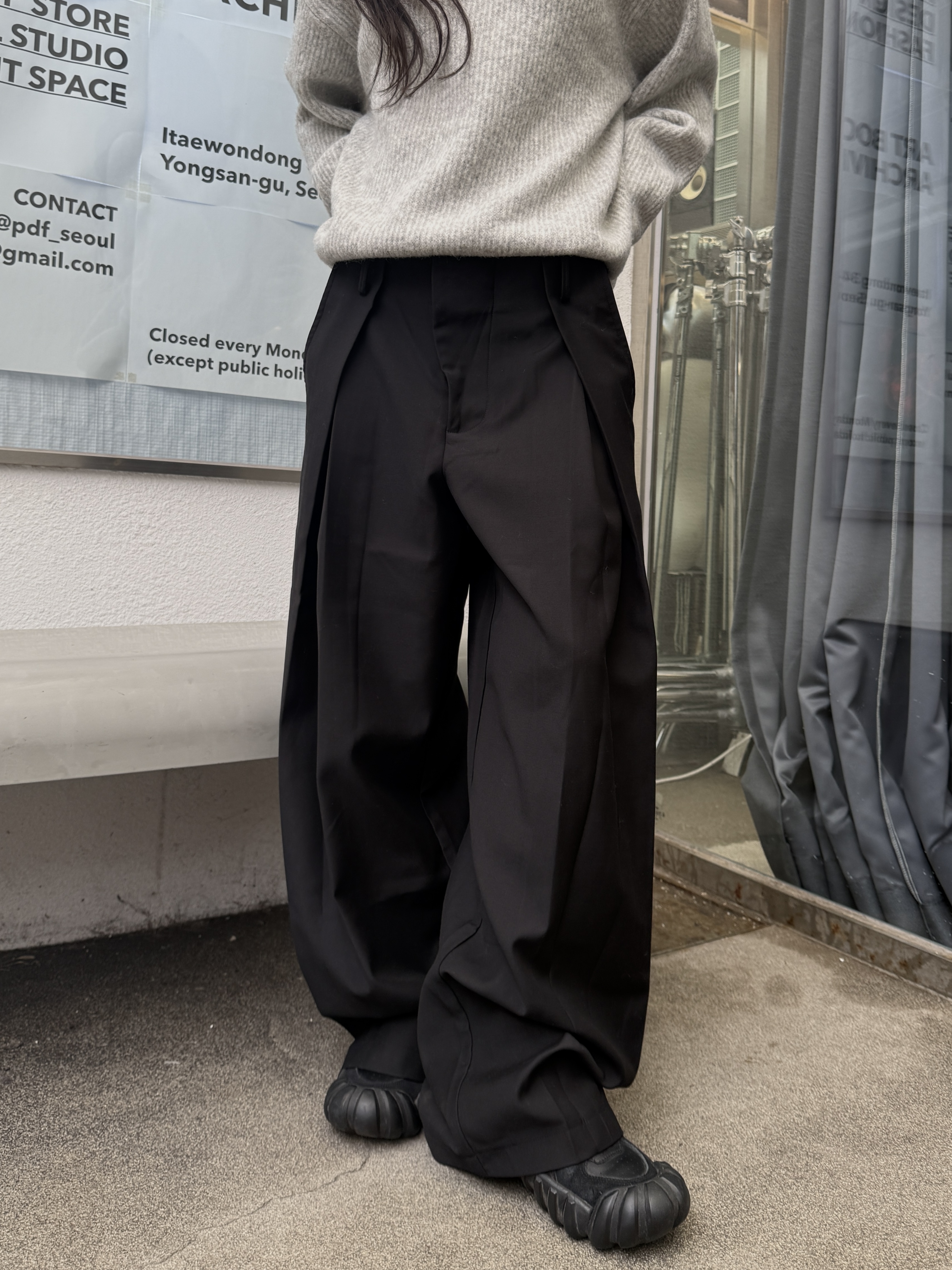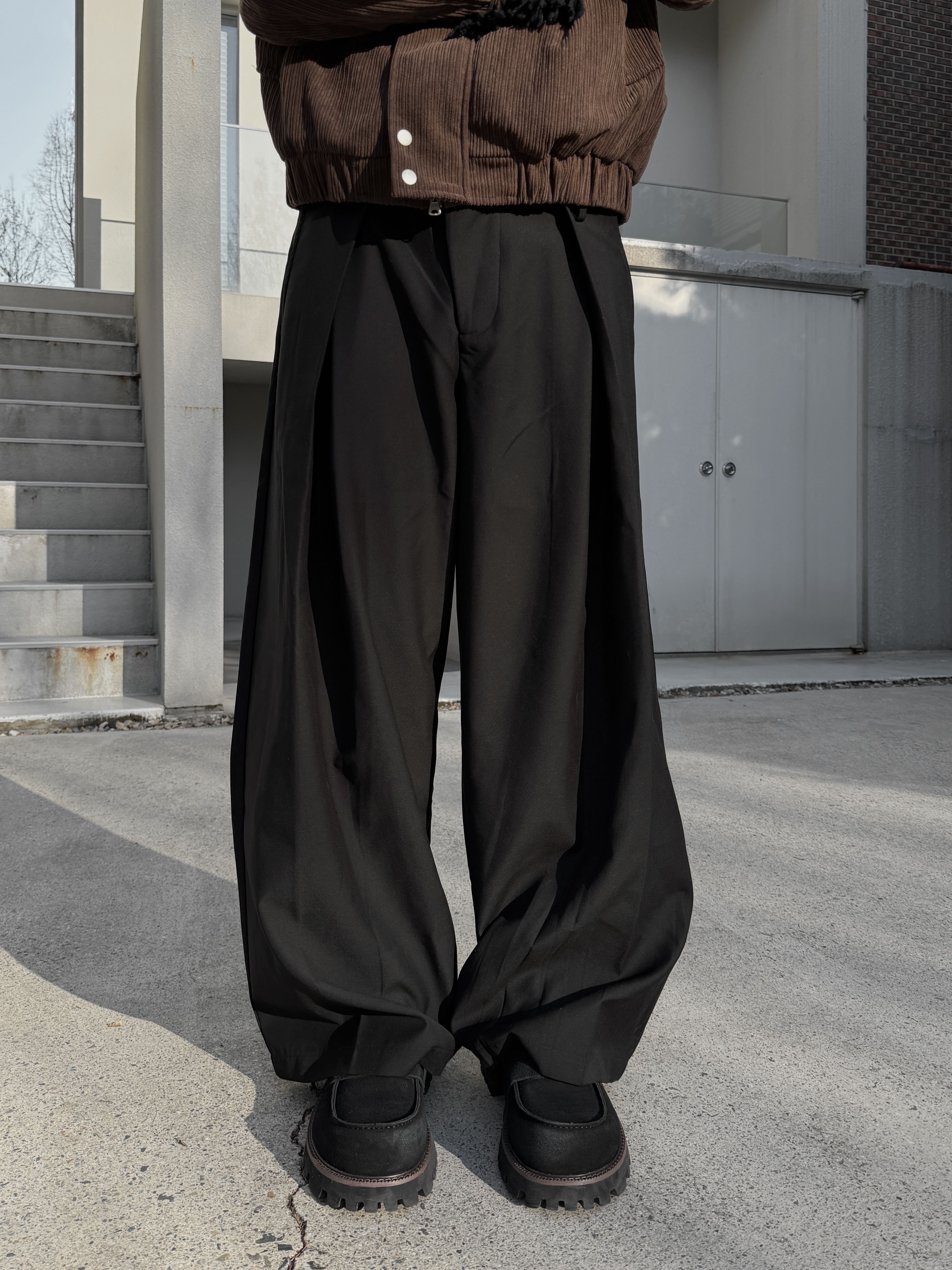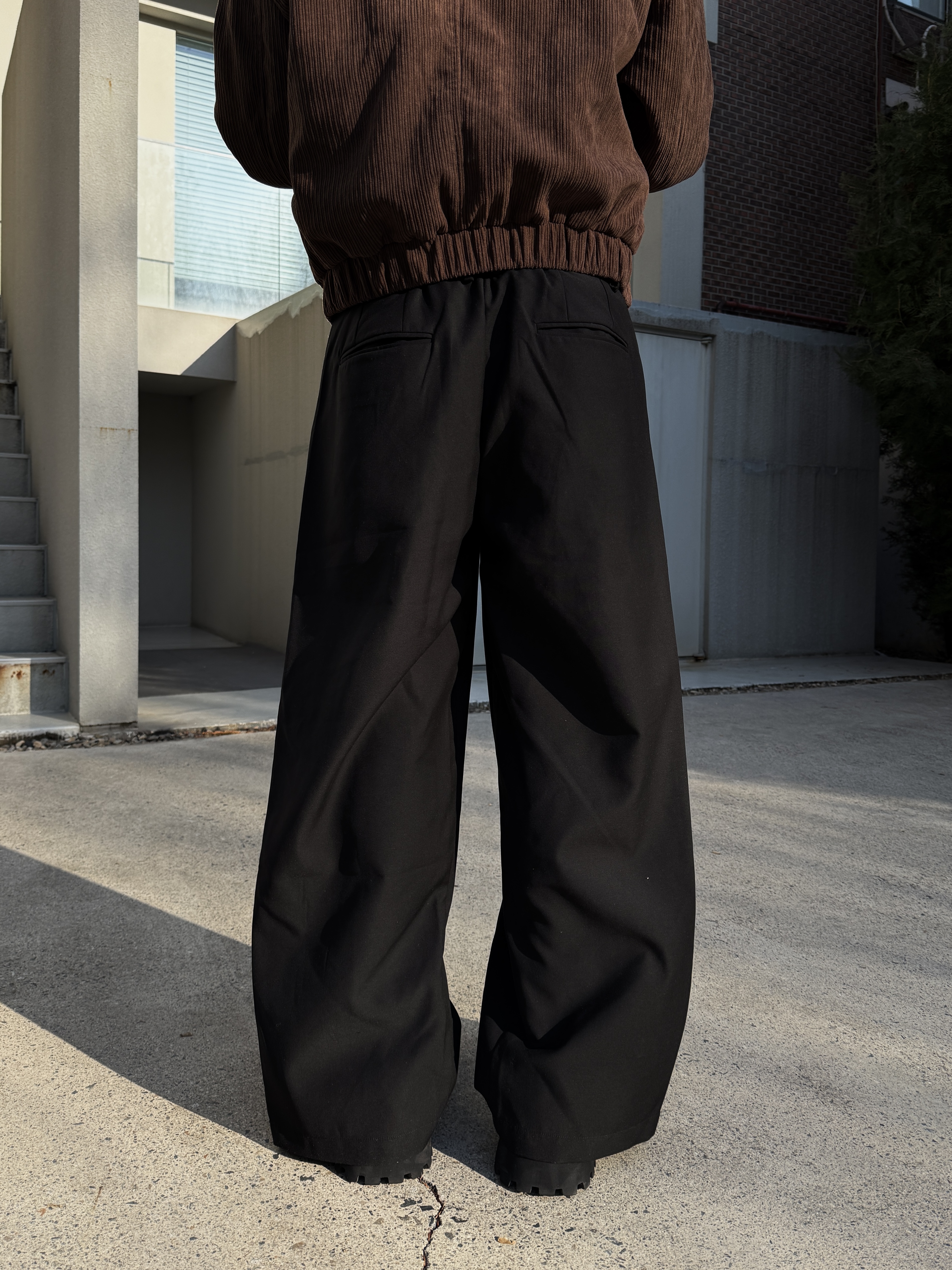 [IDEAL MADE]層次摺線 寬鬆落地 鬆緊西裝褲(現貨/黑)