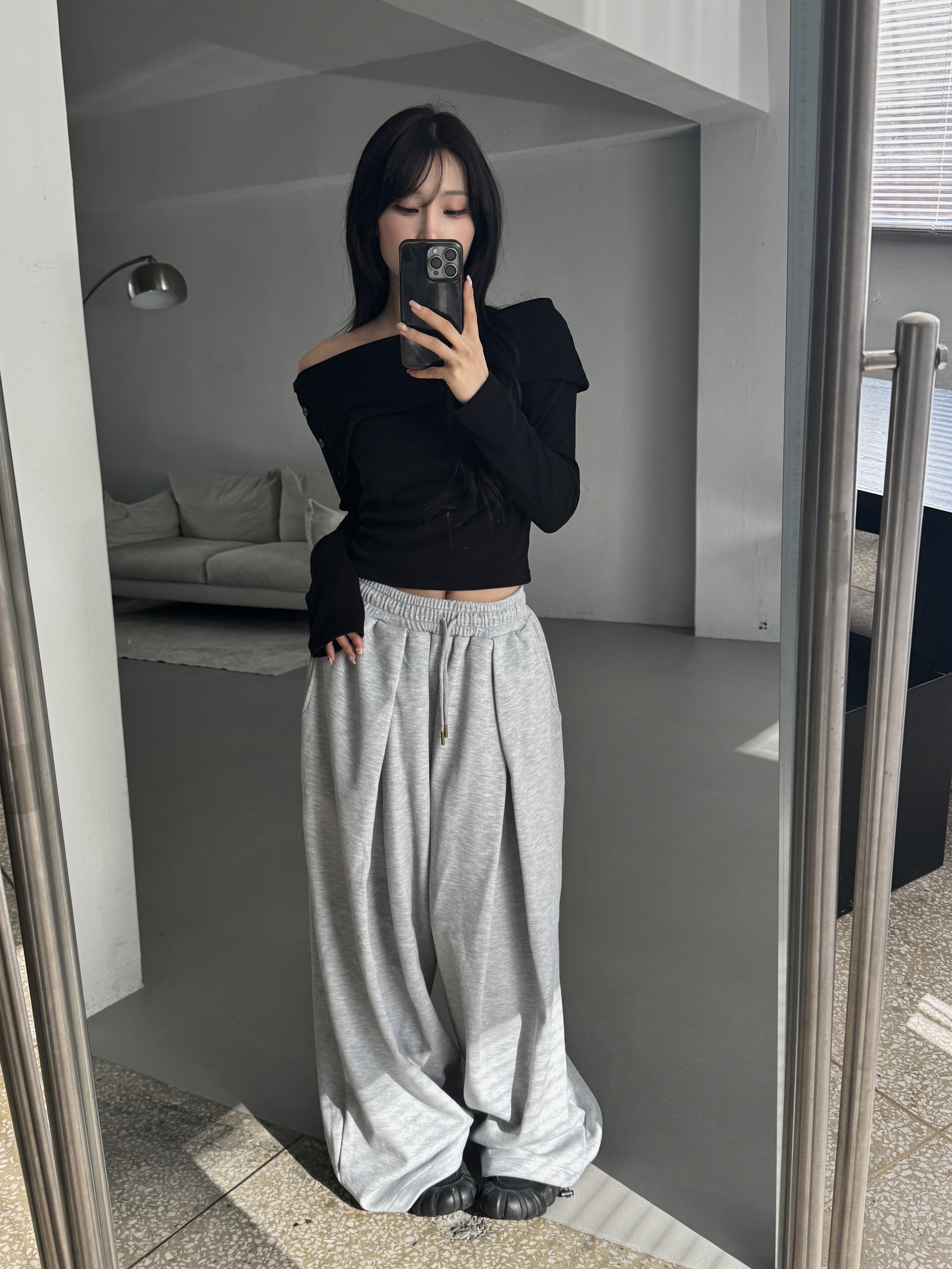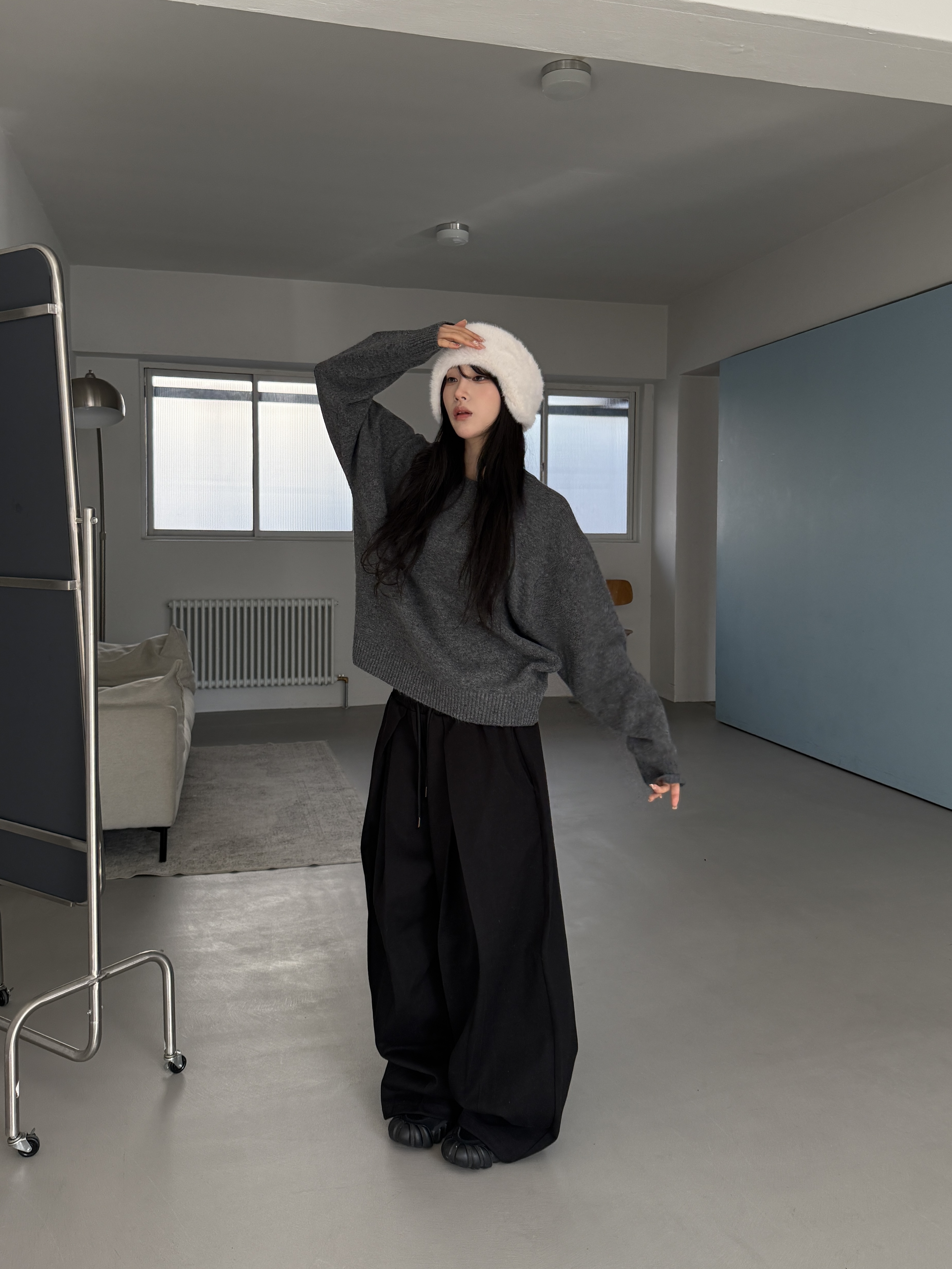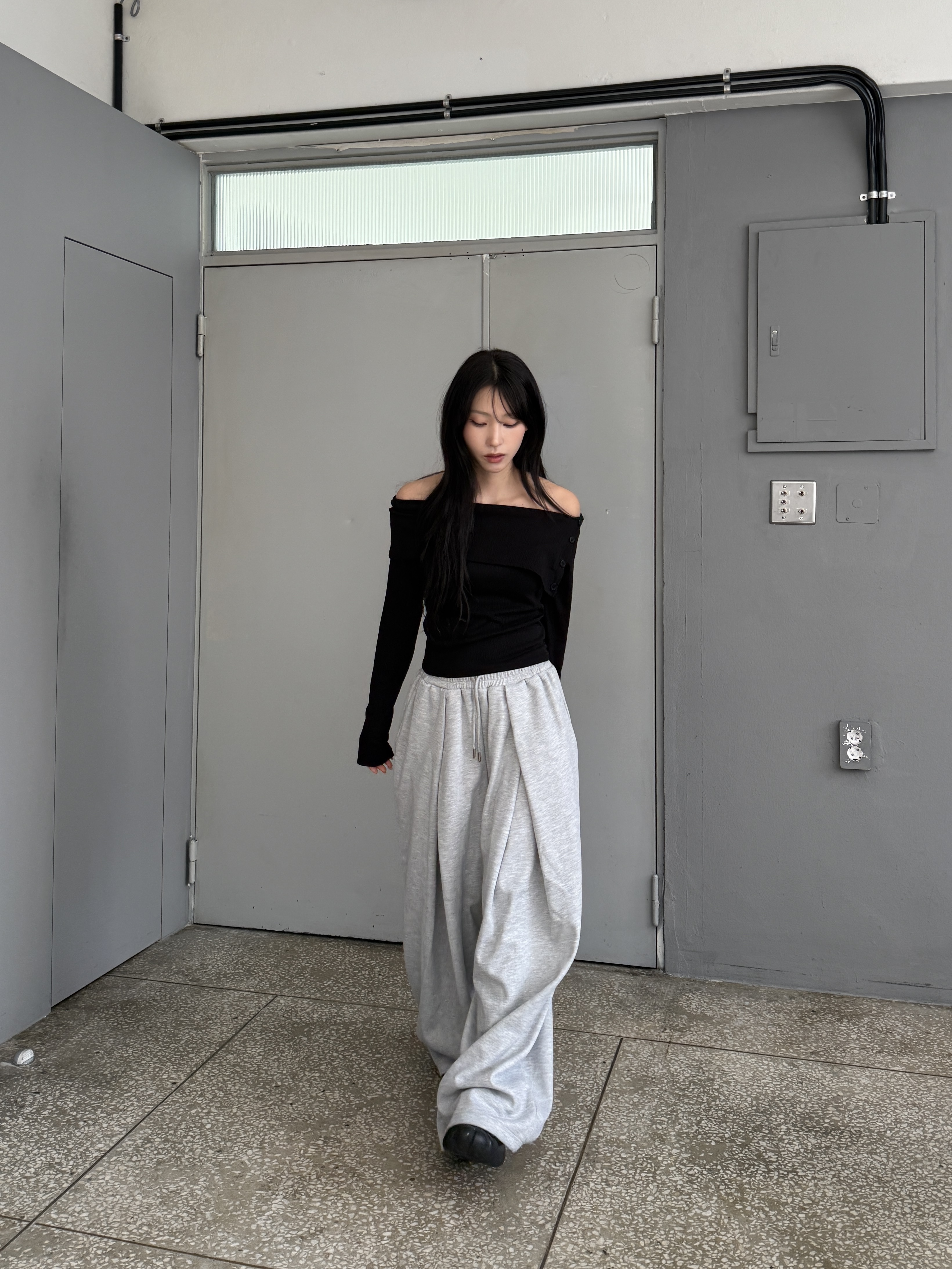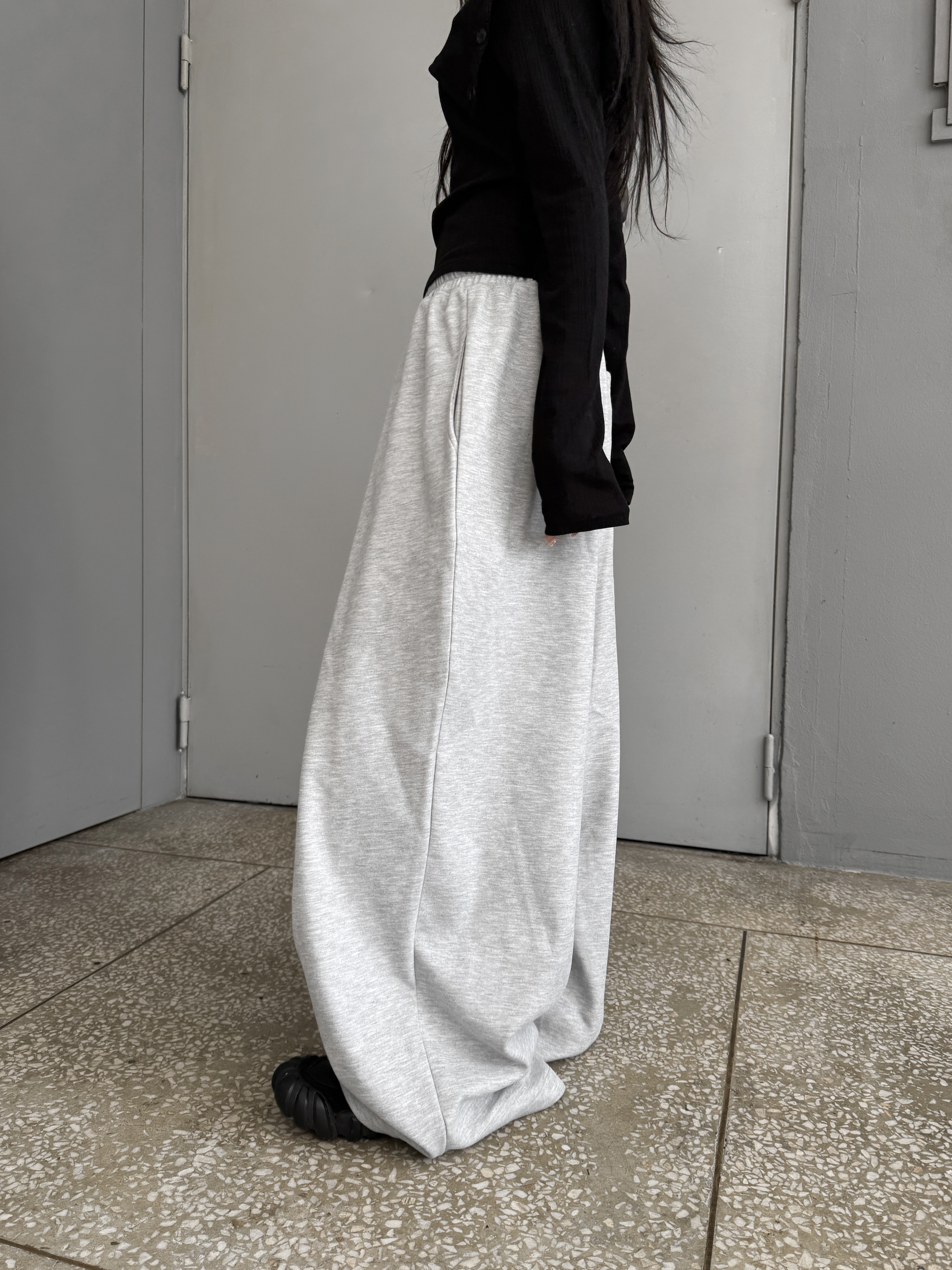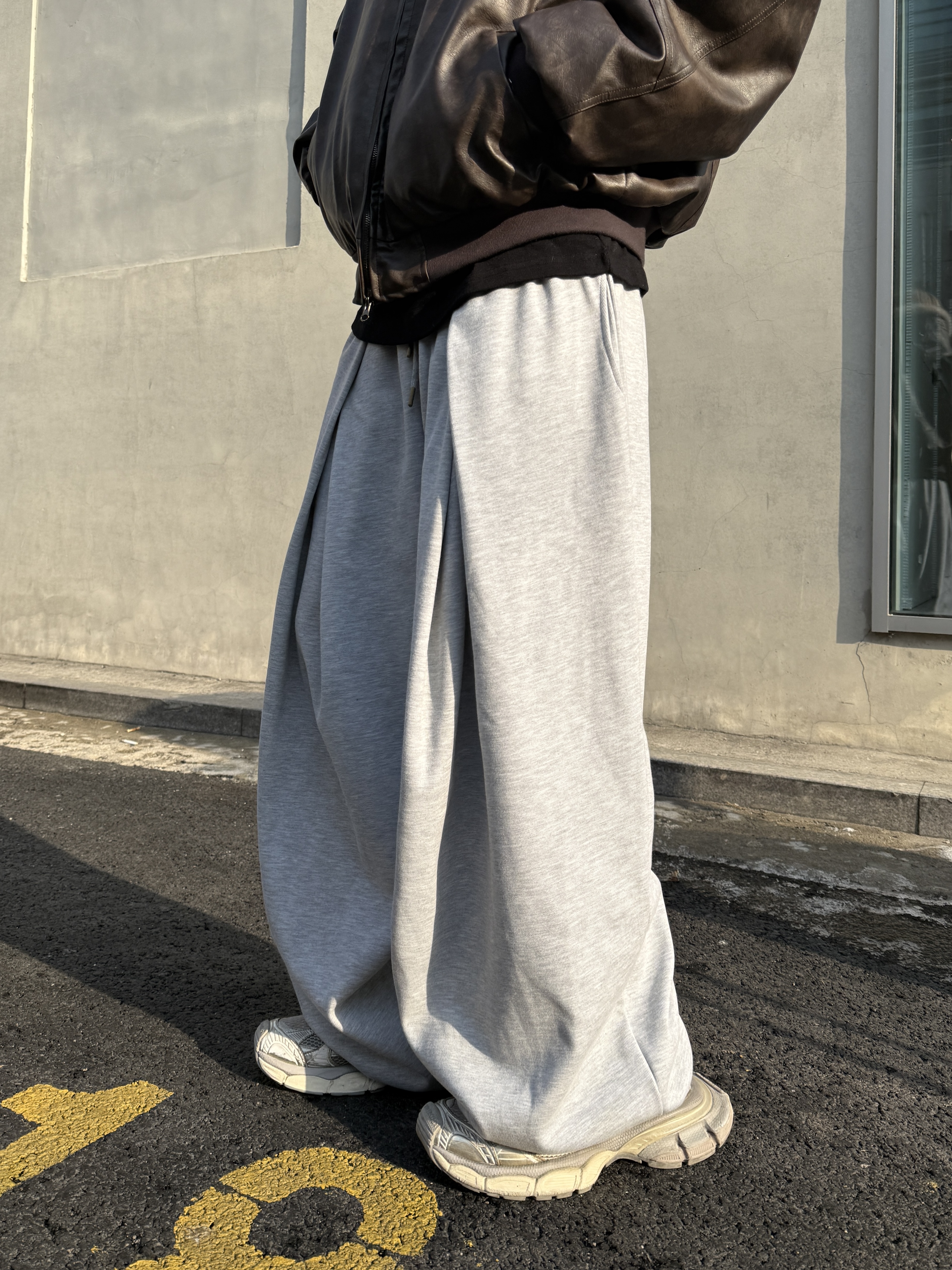 [IDEAL MADE]立體摺線 寬鬆闊腿棉褲(灰)(現貨)