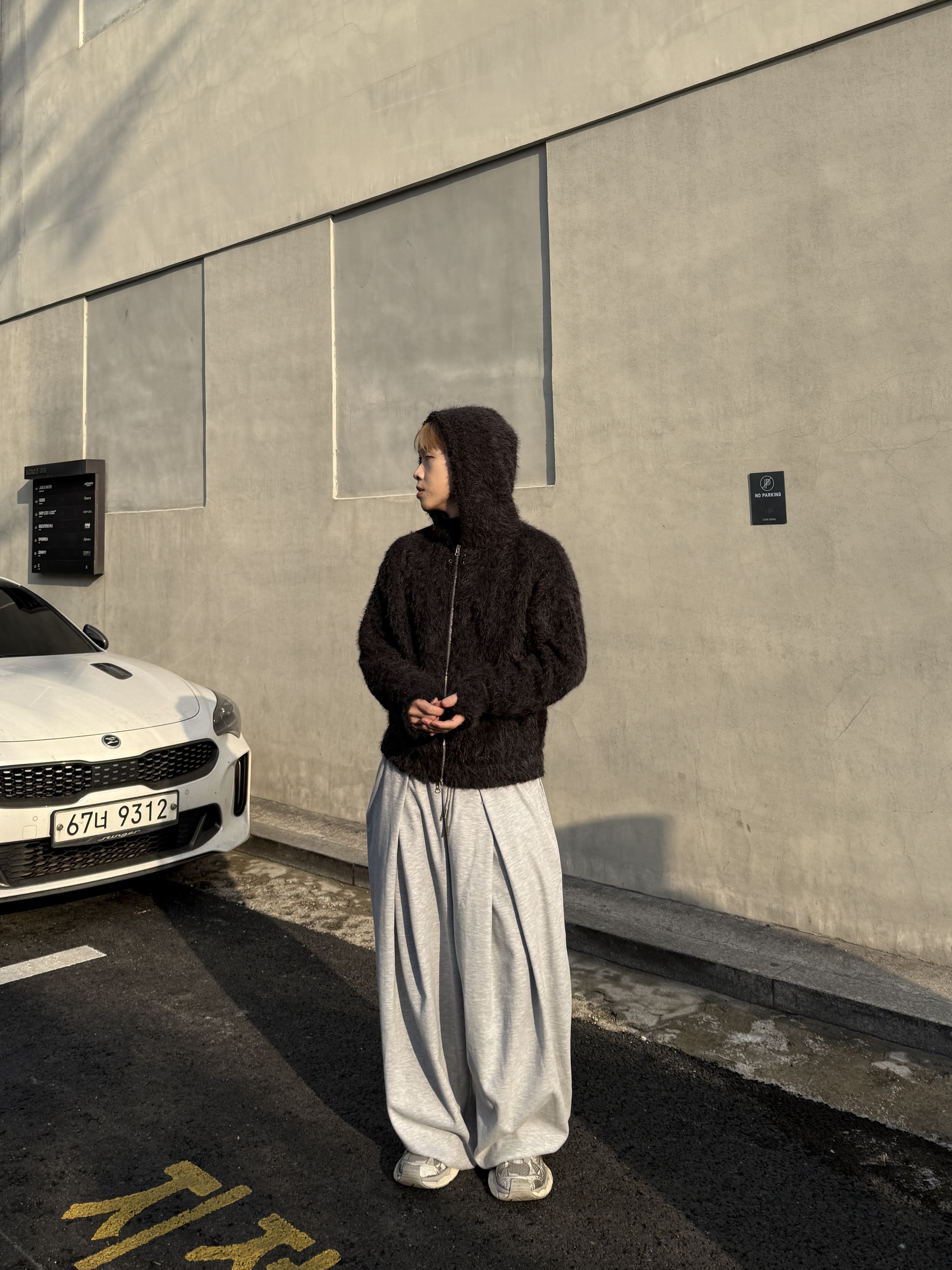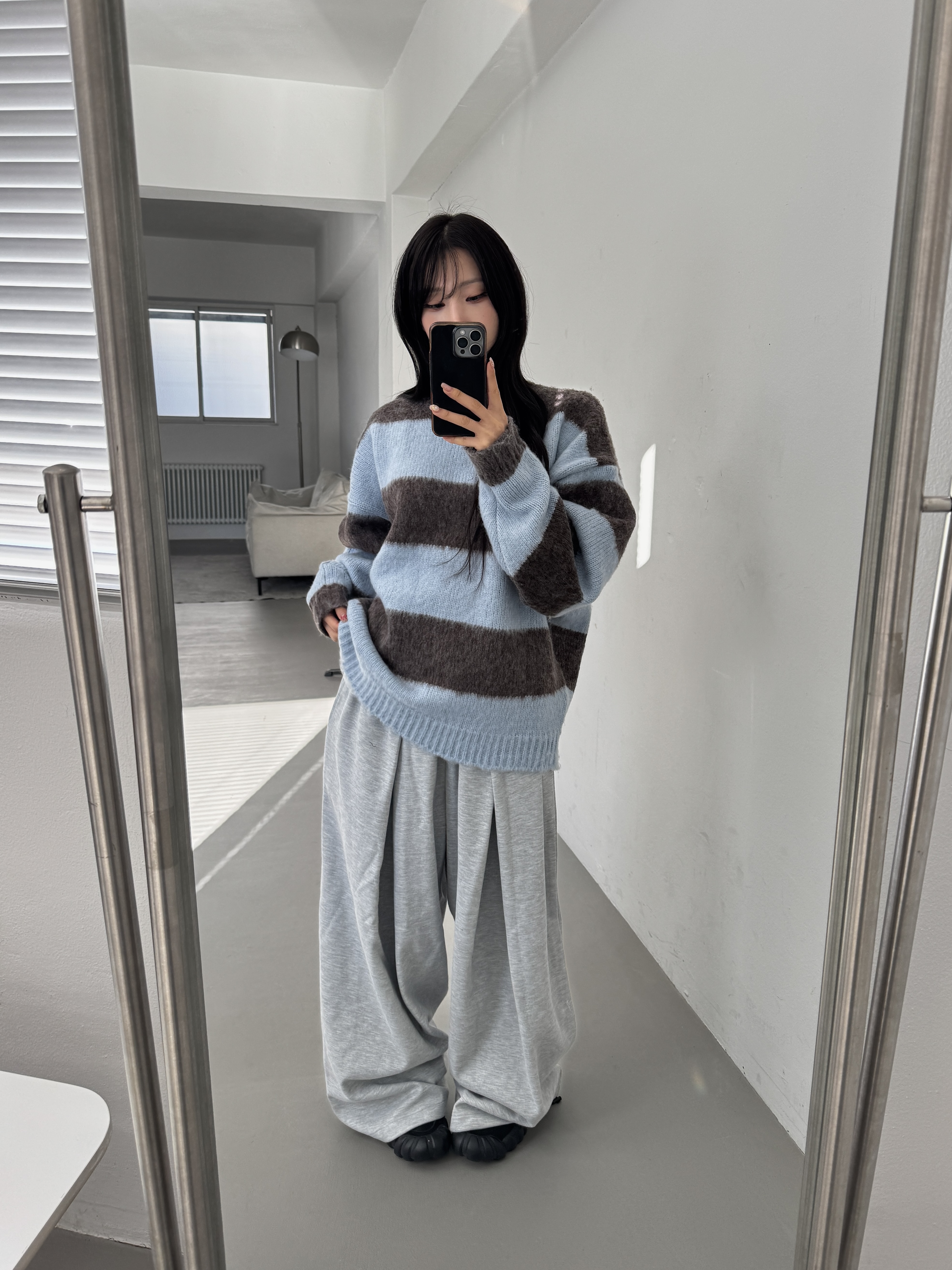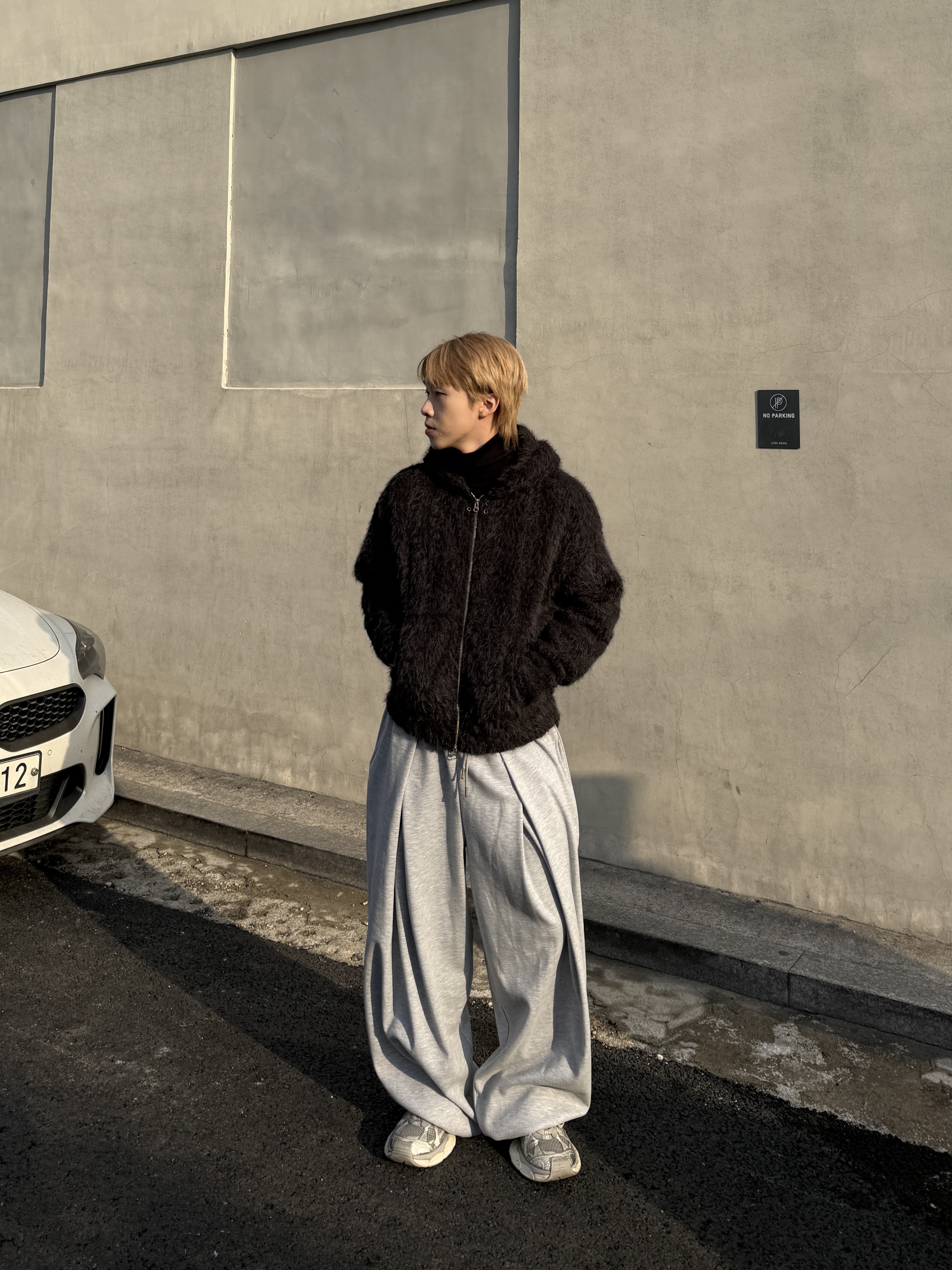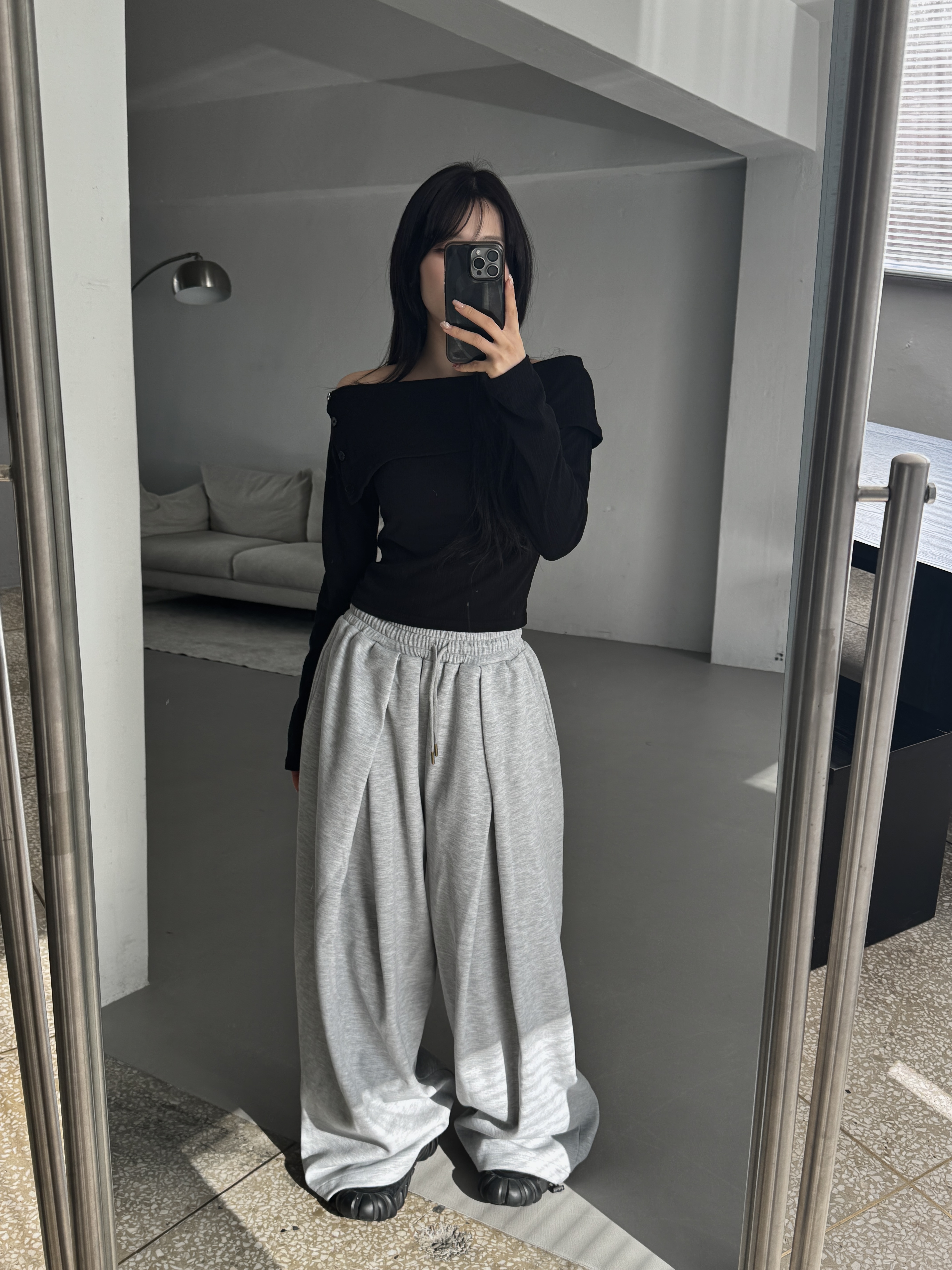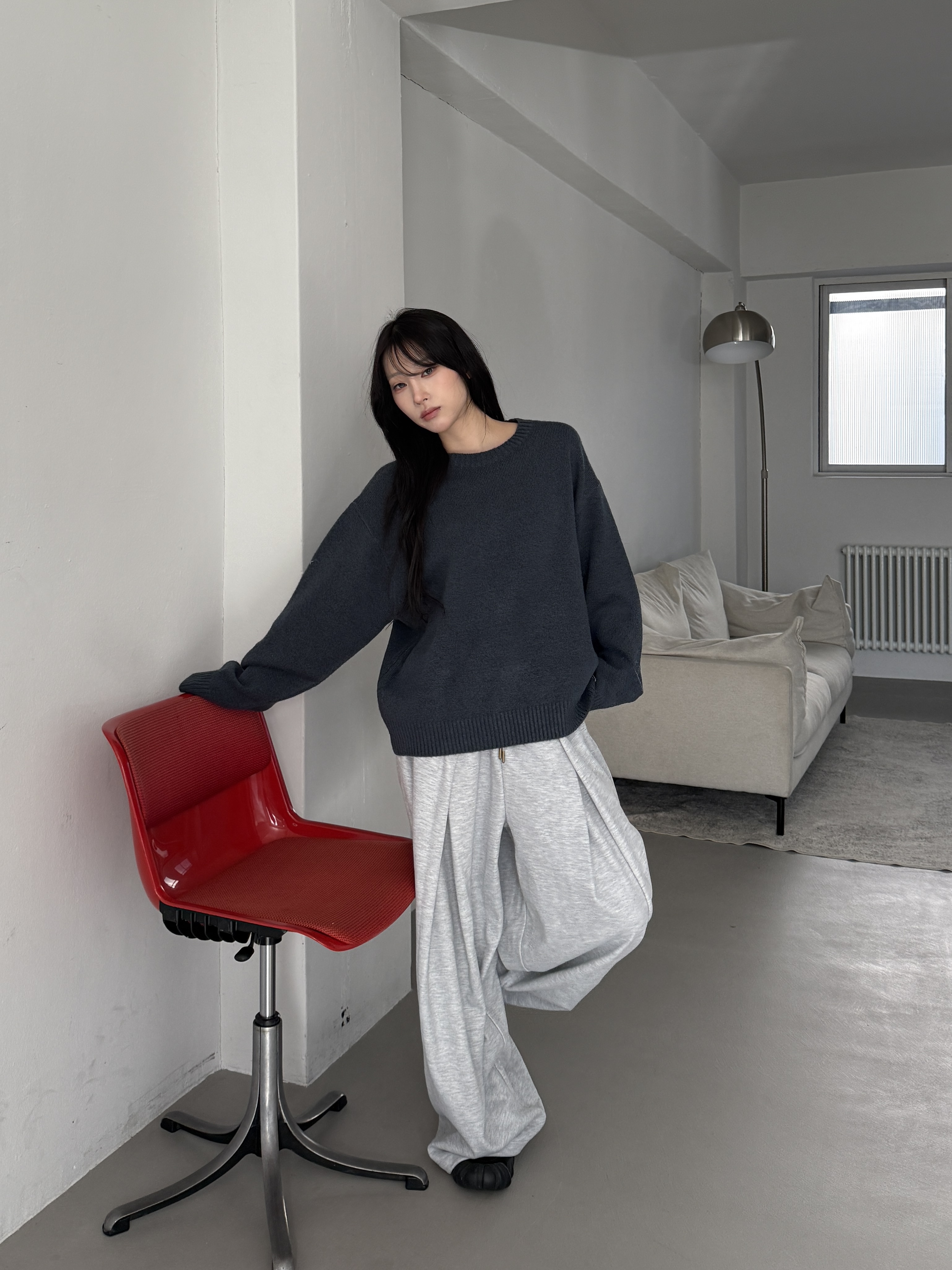 [IDEAL MADE]立體摺線 寬鬆闊腿棉褲(灰)(現貨)