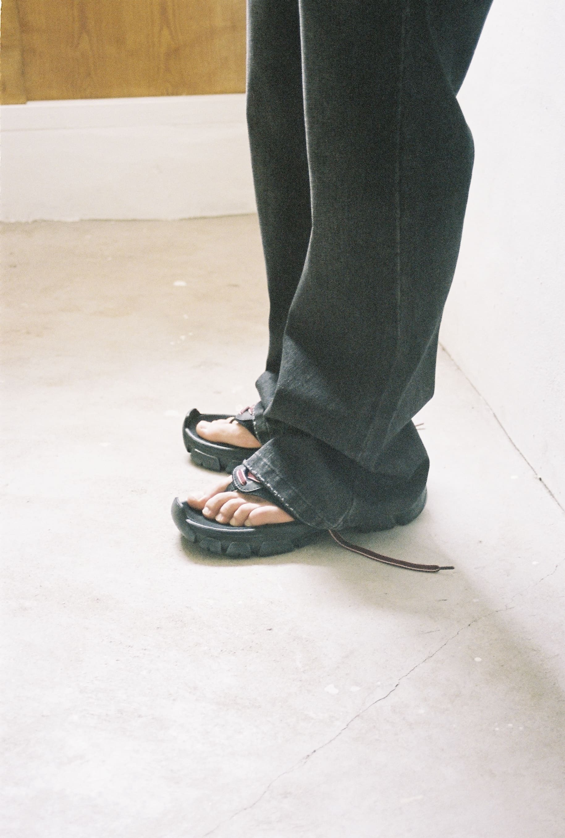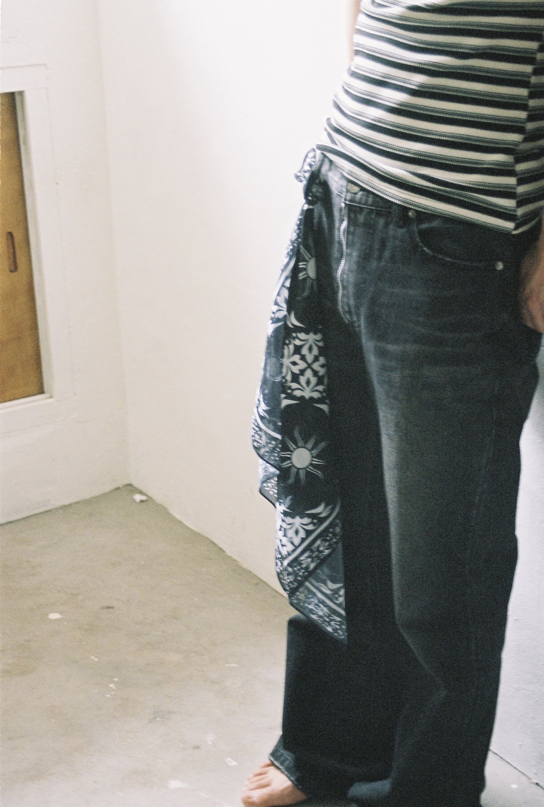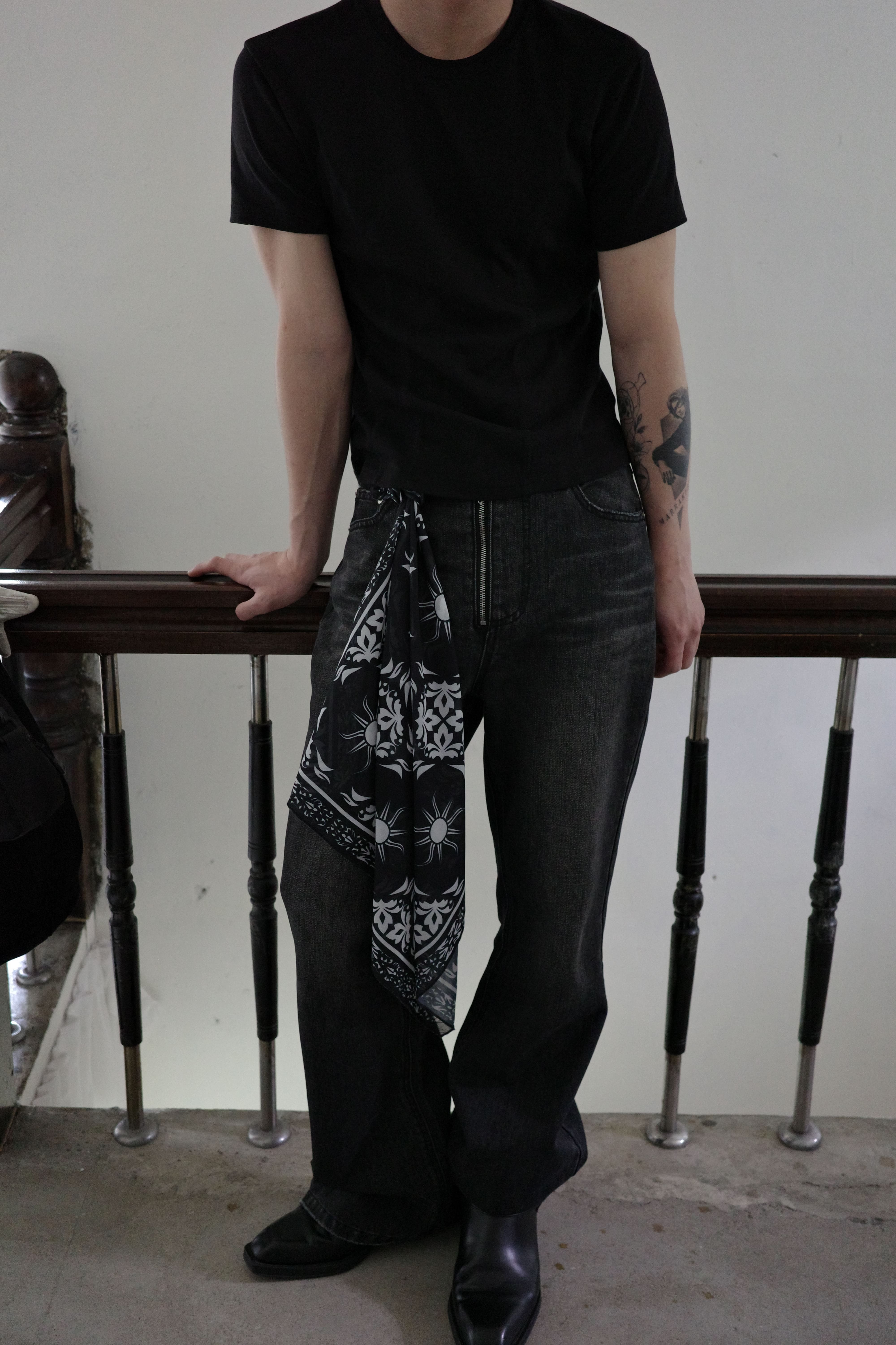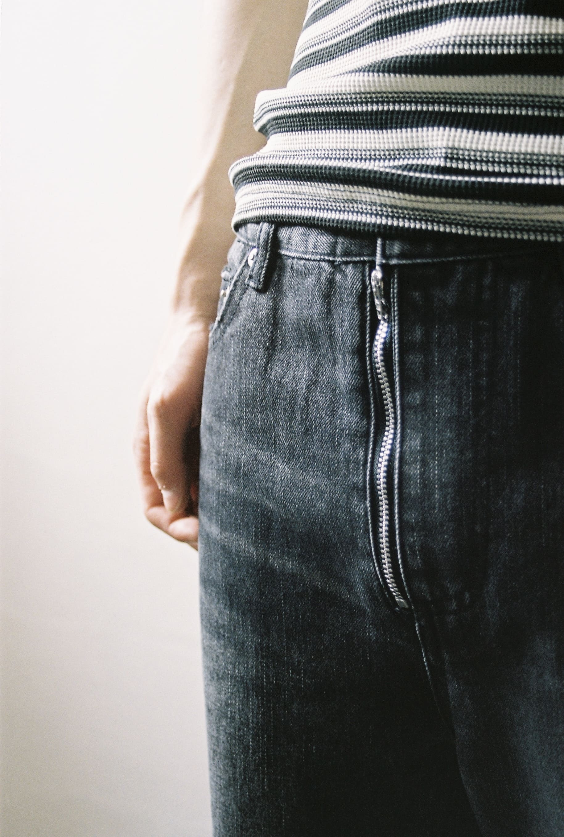 先鋒未來風格/微喇叭修飾版型/自然水洗工藝/前移側線設計修飾腿型比例/不規則鬚邊處理